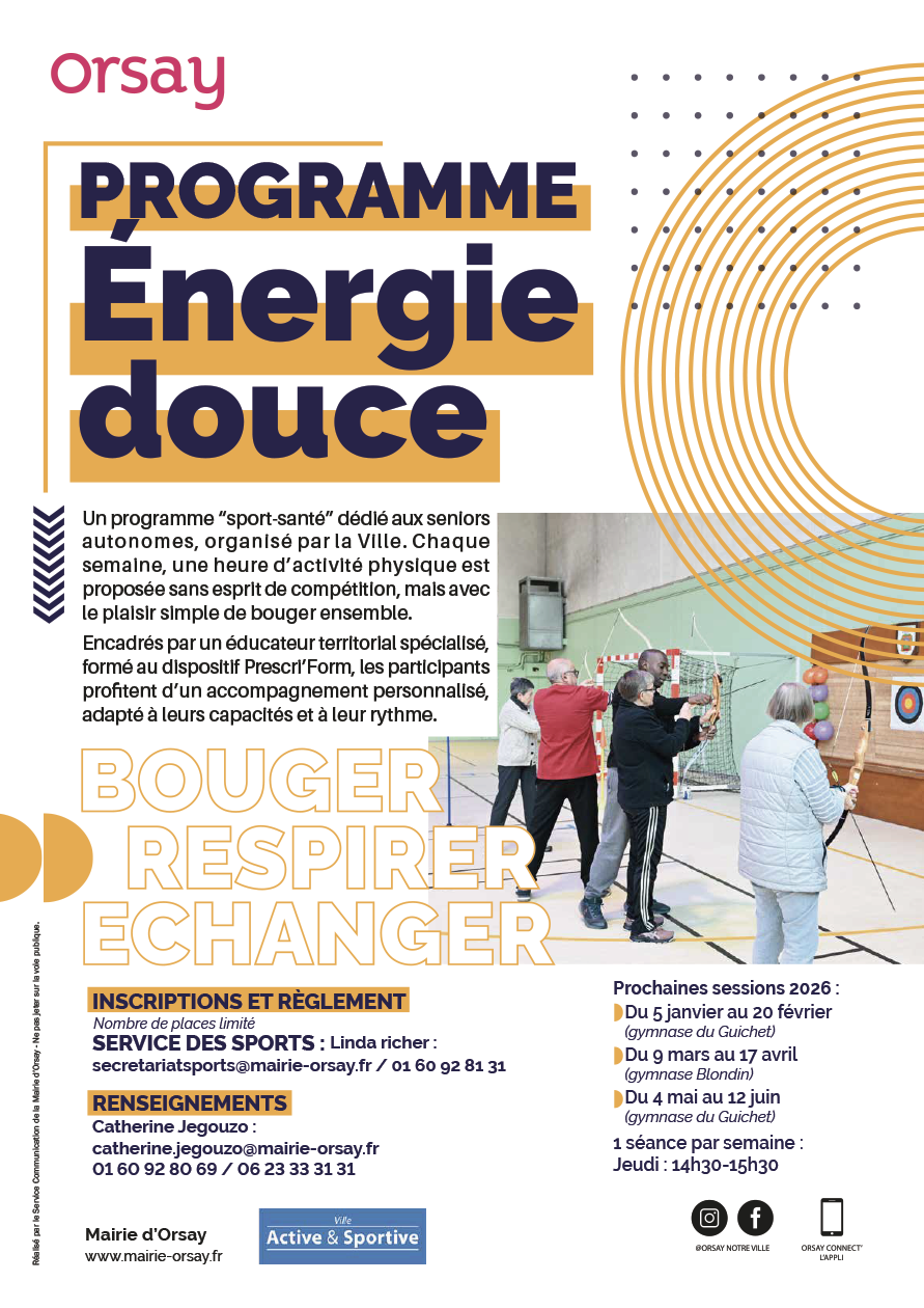 L'ARO soutient ce programme " Energie douce " dédié aux Seniors et porté par le Service des Sports de la Mairie d'Orsay.