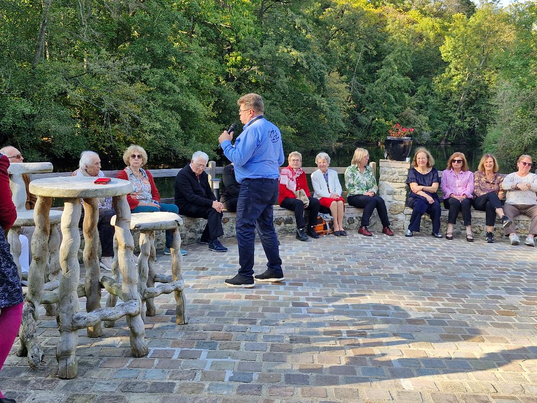 Comme dans la chanson " c'est ma première surprise sortie", j'avais une petite crainte quant à l'organisation de cette festivité. Or, tout s'est parfaitement déroulé avec même quelques rebondissements inattendus. Le soleil, les cars et les nombreux participant(e)s étaient au rendez vous de ce matin un peu frisquet du 7 octobre 2022. La première surprise fut la visite de Versailles. Non pas du château mais de la ville. Soit en car, soit à pied, nous avons eu une visite guidée de cette ville historique. A la suite de cela nous avons rejoint l'auberge du Manet à Montigny-le-Bretonneux. Dans un cadre bucolique et lacustre nous avons tout d'abord pris l'apéritif sur une charmante terrasse faite en lattes de bois ajourées. L'accueil et le repas fut à la hauteur du cadre de cette auberge. Le maire et les membres présents de son équipe ne furent pas les derniers à apprécier le lieu et les plats ! Et pour l'ambiance, nous avions Stéphane qui a su nous divertir par son humour et son talent de musicien et chanteur. Et là, place à la danse et place aux photos. L'une d'elle est particulièrement émouvante car regroupant les 4 anciennes et actuelles présidentes de l'ARO. Ce fut réellement une journée festive qui a permis de nous retrouver entre ami(e)s pour le plus grand bonheur de toutes et tous.