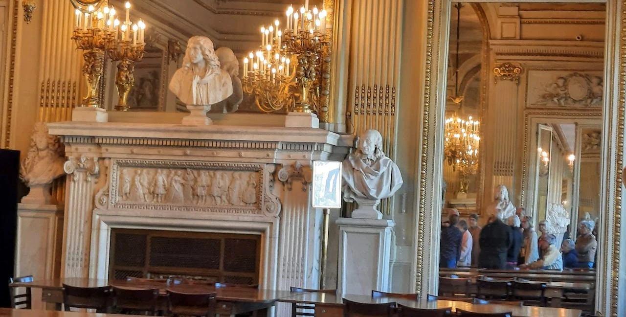 La Comédie Française, surnommée Maison de Molière, bien que Molière (décédé en 1673) ne l'ait jamais connue, fut créée par Louis XIV en 1680., Fermée pendant la Révolution, réorganisée par Napoléon en 1799, elle réside depuis lors au coeur du Palais-Royal. La visite guidée a retracé l'histoire de la Comédie Française au travers de ses collections et de ses oeuvres d'art, ainsi que son fonctionnement actuel.